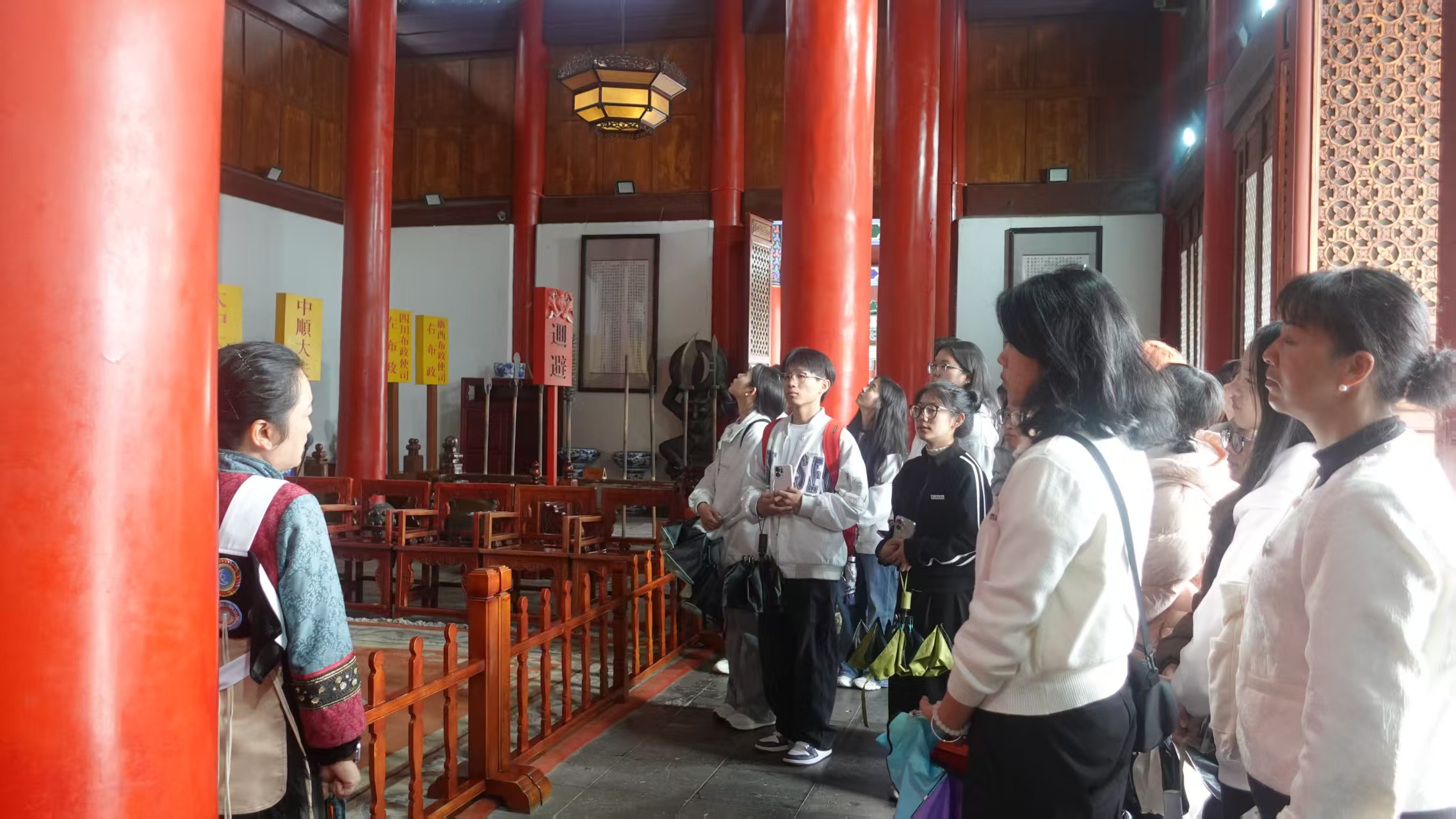 随后,各队员们跟随带队教师段士爱进入木府博物院,由身着纳西族服饰的讲解员王丽花带领大家开启这段木府之旅。各队员们聚精会神地听着,时不时发出感叹,在这一方天地里,竟蕴含着这样的乾坤:藏族八宝、四百余年的紫薇树、徐霞客游云南等等数不胜数的“名场面”,令大家忍不住纷纷拿出手机拍照记录。